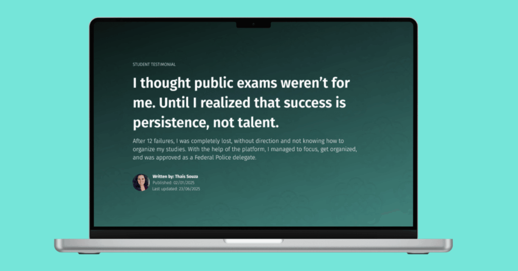 Content like this can be built around the testimonial of a student who was considering giving up on pursuing a public service exam.